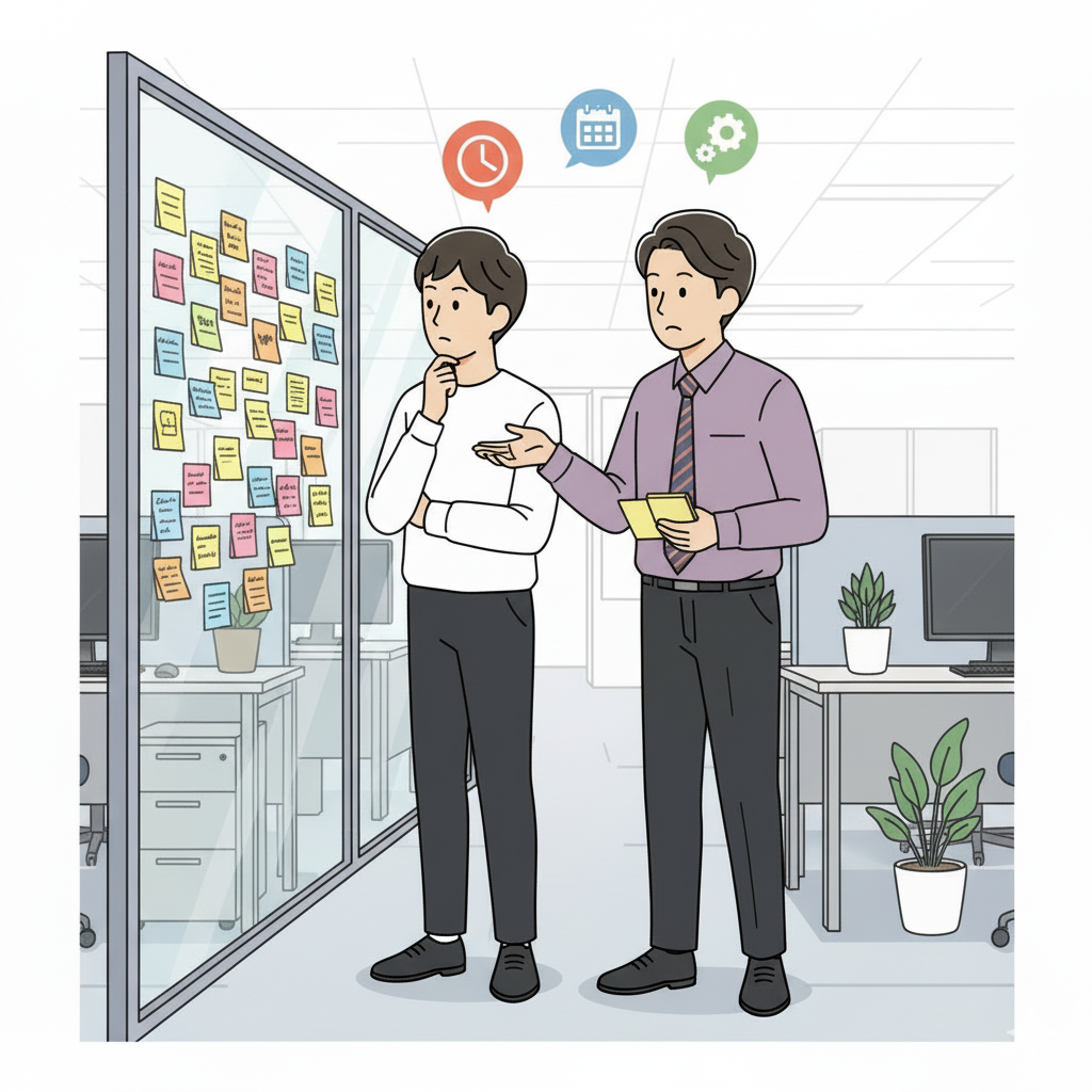 入社2年目のユウタが肩を落としている。初めて任されたタスク見積もり。「3日くらいでできます!」と勢いよく答えたものの、実際は6日かかってしまった。