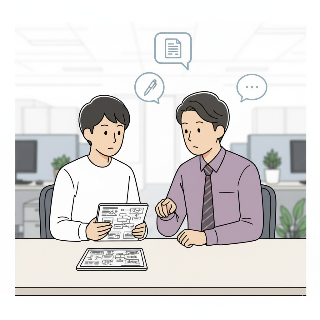 「先輩、昨日の設計書レビュー…けっこう刺さりました。“後から読む人が分かるかな?”って、そんなに分かりにくかったですか?」