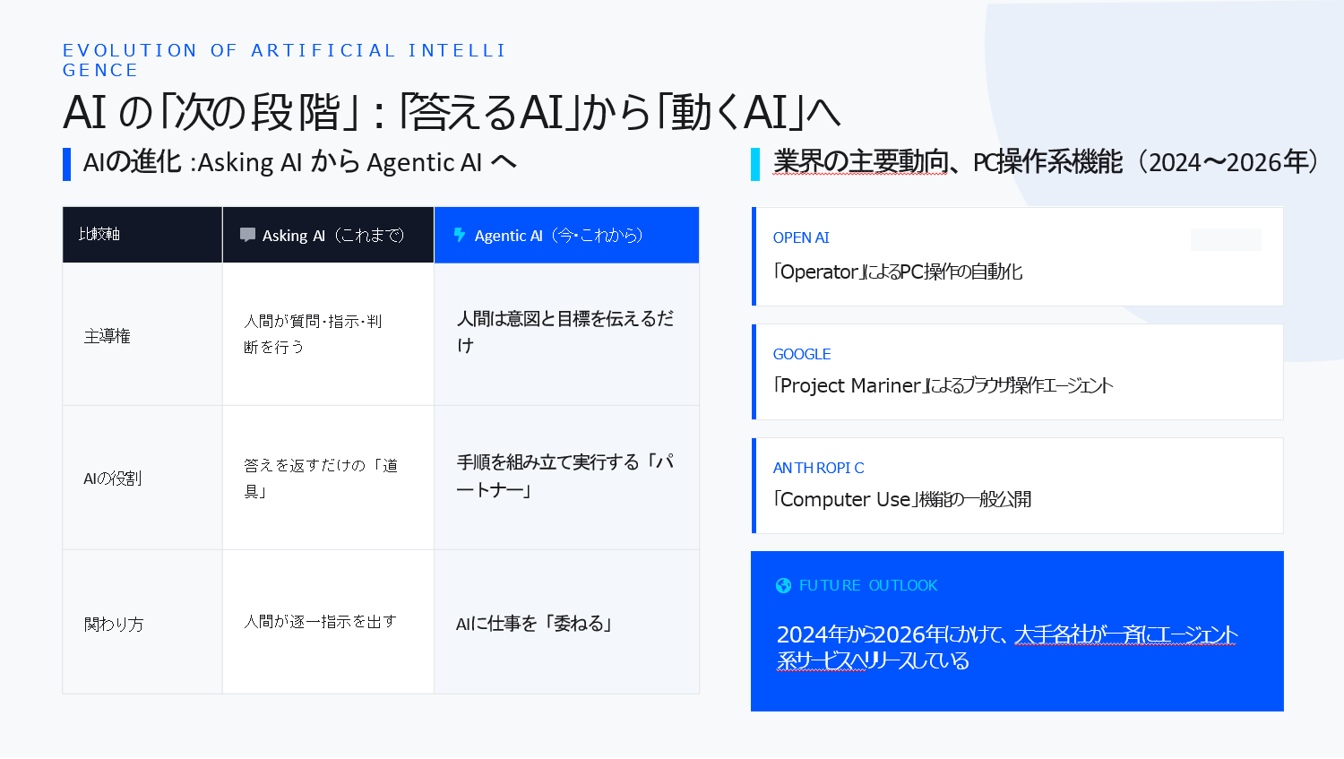 1. 「答えるAI」から「動くAI」へ。突きつけられたパラダイムシフト
