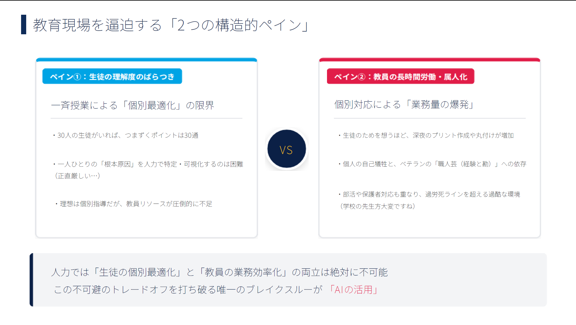 1. 教育現場を苦しめる「2つのペイン」と「二度手間の悲劇」